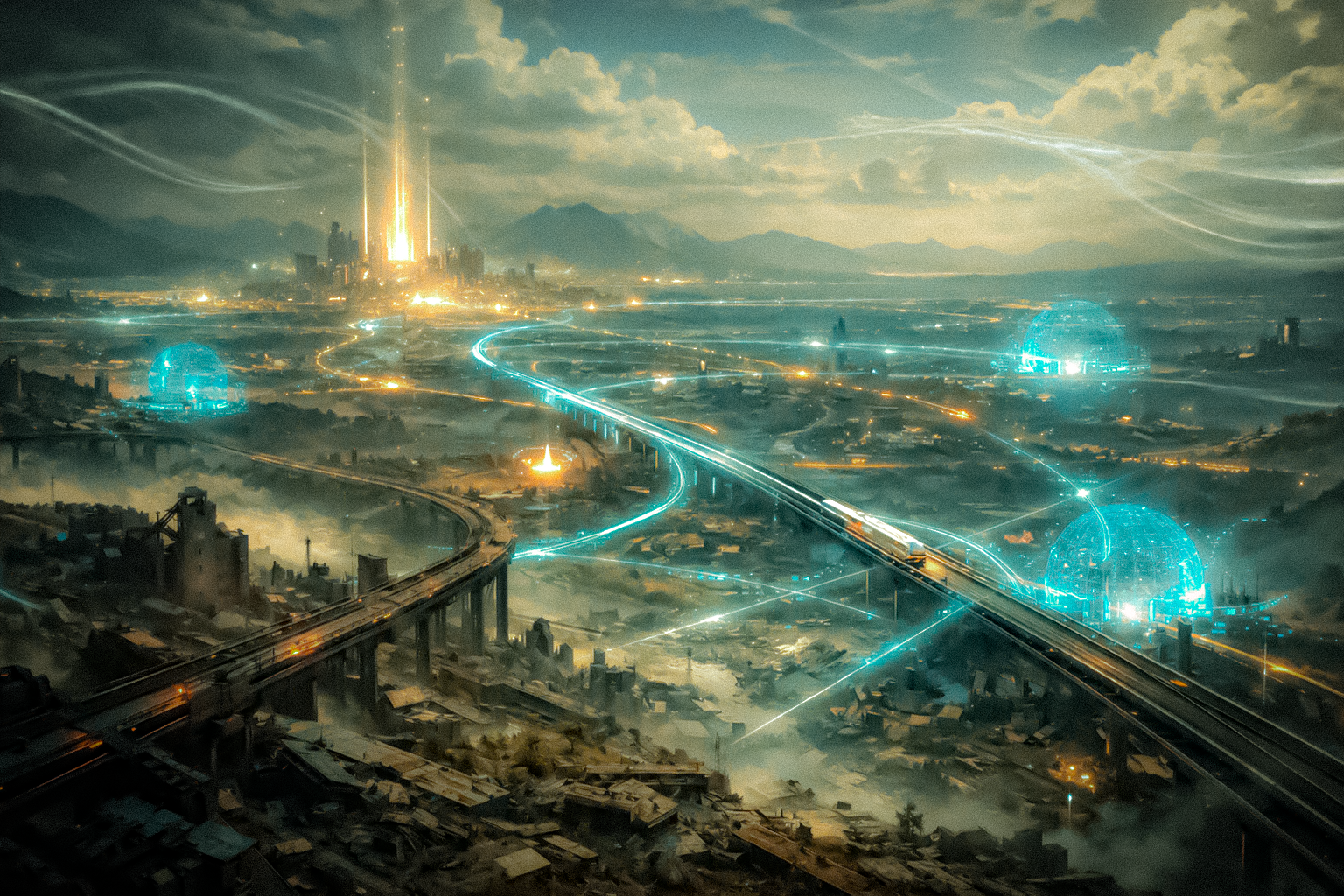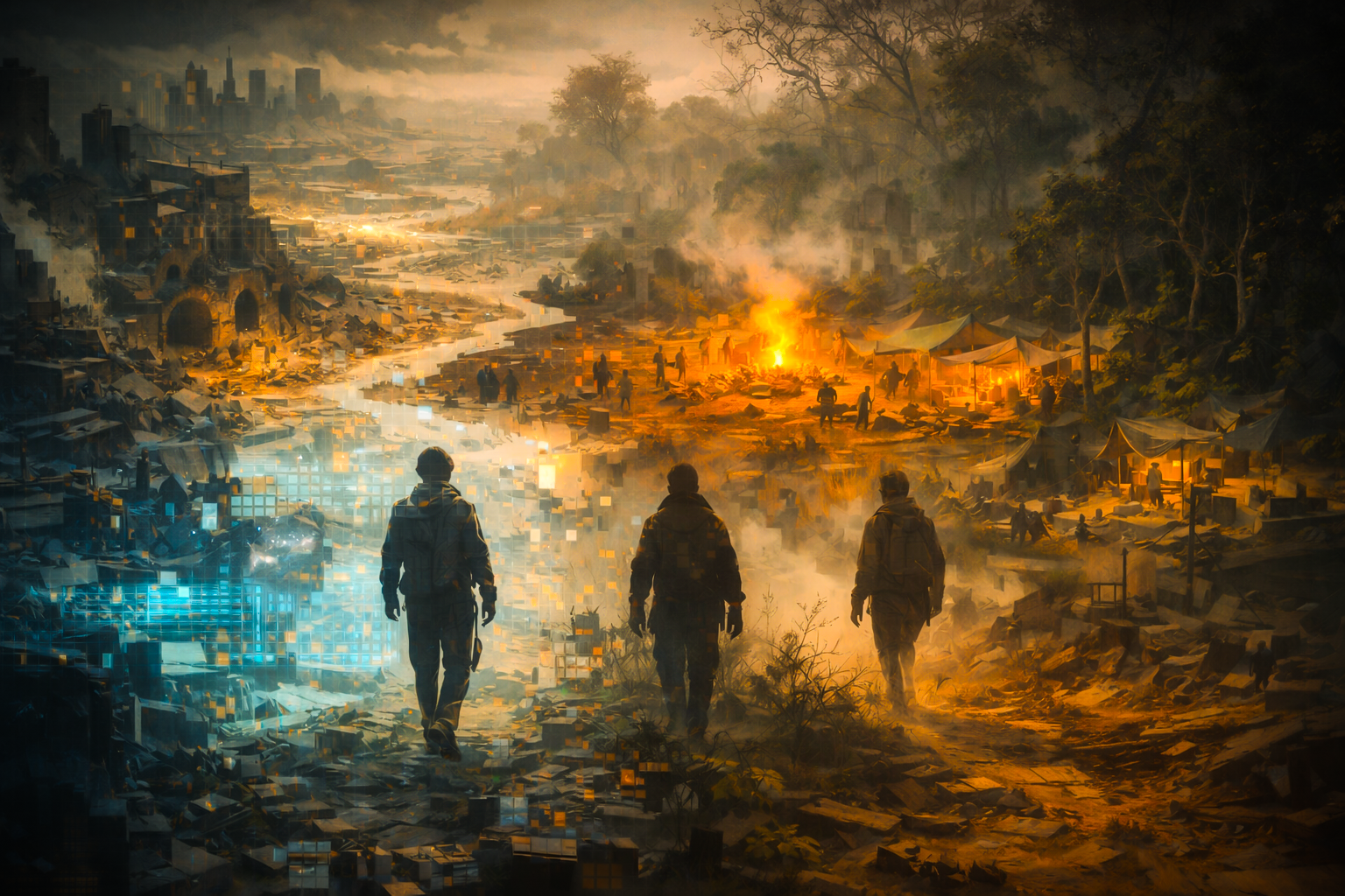 Les États n’ont pas disparu dans une guerre finale. Ils se sont dissous dans l’infrastructure. La gouvernance s’est déplacée vers des systèmes plus rapides que les lois : gestion énergétique, logistique, réseau d’assistance, protocoles de sécurité, optimisation des flux.