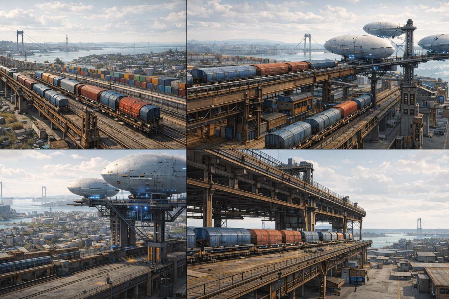 Plateformes d’ancrage pour aérostats, zones d’arrimage, entrepôts de transit.