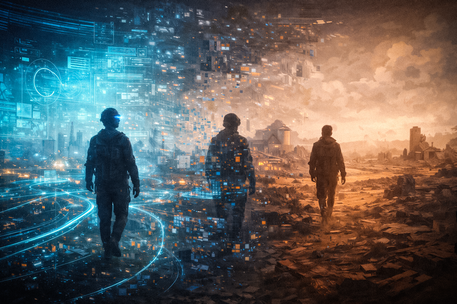Les États n’ont pas disparu dans une guerre finale. Ils se sont dissous dans l’infrastructure. La gouvernance s’est déplacée vers des systèmes plus rapides que les lois : gestion énergétique, logistique, réseau d’assistance, protocoles de sécurité, optimisation des flux.